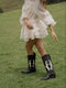 - Aplicaciones con siluetas de flamas en cuero beige craquelado efecto envejecido
